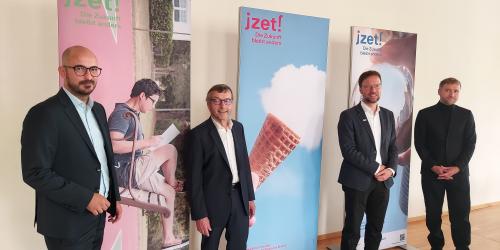 Die Stadt Jena bewirbt sich gemeinsam mit der Universität Jena um das Zukunftszentrum für Deutsche Einheit und Europäische Transformation und wird dabei als ausgewählter Thüringer Bewerber exklusiv von der Landesregierung unterstützt. Bis Ende September werden die Bewerbungsunterlagen abgegeben. Zum Auftakt in die finale Bewerbungsphase stellten Oberbürgermeister Dr. Thomas Nitzsche und Universitätspräsident Prof. Dr. Walter Rosenthal eine Kommunikationskampagne vor, bei der jeder eingeladen ist, eigene Aufbruch- und Umbrucherfahrungen zur Deutschen Einheit zu erzählen.