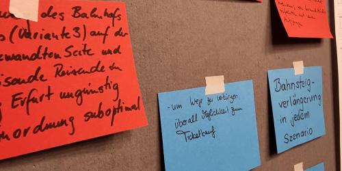 Bei den Diskussionen zeigte sich zum Beispiel, dass die mögliche Verlängerung des Bahnsteiges insgesamt begrüßt wurde, genauso die direkte Verknüpfung der ÖPNV-Haltestelle mit den Bahnsteigen. Zudem gab es Hinweise zur Wegeführung und Ideen zur Gestaltung des Engelplatzes. So wurde u. a. diskutiert, ob dieser autofrei sein könnte.