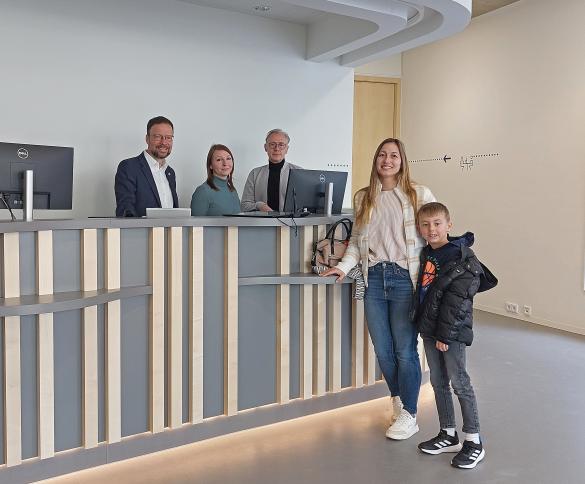 Miriam Kuch war die erste Bürgerin, die am Montagmorgen für einen Termin an den neuen Standort der Bürgerdienste am Engelplatz kam. Für Sohn Heinrich musste dringend ein Reisepass her, da die Kinderreisepässe zu Beginn des Jahres abgeschafft worden waren. Mitarbeiter Marcel Stroh stellte ein vorläufiges Dokument aus, so dass der Osterurlaub für die Familie jetzt beginnen kann. Mitarbeiterin Patricia Wochnik, die am zentralen Empfang zusammen mit Oberbürgermeister Dr. Thomas Nitzsche und Fachdienstleiter Olaf Schroth die ersten Gäste begrüßte, freute sich über die Arbeitsatmosphäre im modernen Gebäude. „Der Geräuschpegel ist deutlich niedriger als am alten Standort", sagte Wochnik. Der Start in den neuen Räumlichkeiten habe gut funktioniert, berichtete sie: „Wir helfen uns gegenseitig, wir sind ein gutes Team."