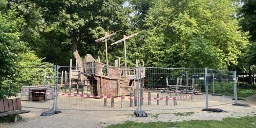 Durch die umgehende Kontrolle wurde festgestellt, dass es sich um eine Vielzahl kleinerer Scherben handelt. Eine manuelle Reinigung ist so nicht möglich. Es muss ein kompletter Austausch der ca. 150 t Fallschutzsand erfolgen. Die Spielbereiche um das Schiff und die Rutsche bleiben zum Schutz der Kinder vorübergehend gesperrt. Zur Dauer der Umsetzung kann noch nichts gesagt werden. Seitens des Kommunalservice wird natürlich versucht, dies so bald als möglich zu realisieren.