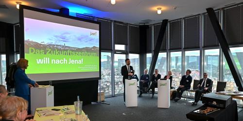 Für die Bewerbungspräsentation haben in zwei Panels zahlreiche Partner und Experten aus Wissenschaft, Wirtschaft, Kunst, Politik und Zivilgesellschaft zeigen können, warum Jena der richtige Standort für das Zukunftszentrum ist: