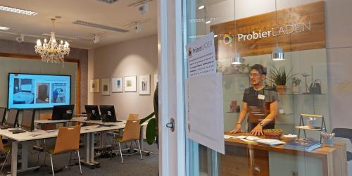 Als Maßnahme des vom Bundesministerium für Wohnen, Stadtentwicklung und Bauwesen geförderten Smart City Projekts wurde der ProbierLaden durch die Zusammenarbeit zahlreicher Akteure ermöglicht. Besonders das Team um Projektkoordinatorin Sandra Laue trug maßgeblich zum Erfolg bei. „Das, was Sie heute hier sehen und erleben dürfen, ist konzeptionell gewachsen und hat einen ganz besonderen Schwung mit Einstellung der Projektleiterin Frau Laue und schlussendlich dem gesamten, sehr kompetenten und vielfältig erfahrenen Team bekommen. Der ProbierLaden ist kein Projekt, das man mal so eben nebenher mit betreut. Es verlangt volle Konzentration und das Einlassen auf die Bedürfnisse der Menschen, der Interessierten”, lobte die Leiterin der Volkshochschule, Dr. Angela Anding, die intensive Arbeit und das Engagement, das hinter der Entstehung des Projekts steckt.