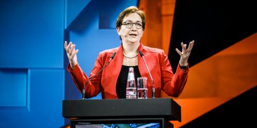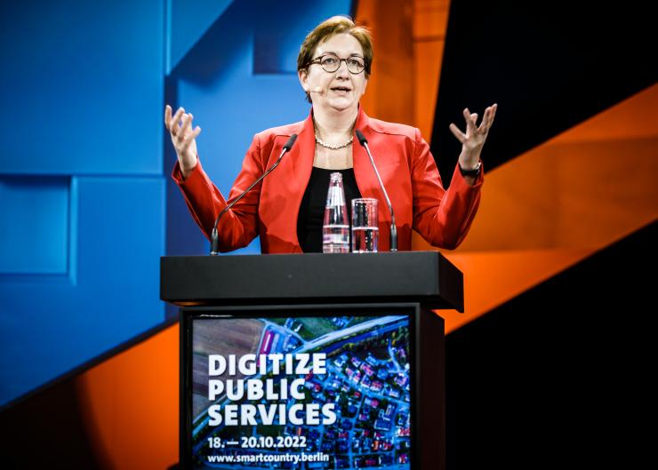 Ministerin Klara Geywitz refereriert über die Zukunftsperspektiven von Smart Cities in Deutschland.